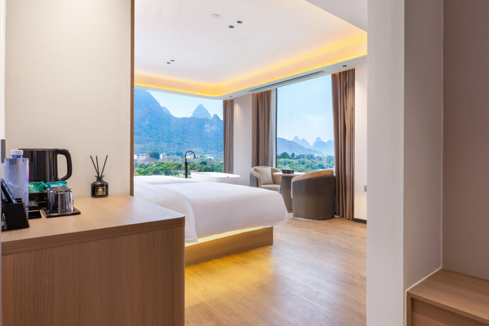 阳朔遇你枕夕轻奢酒店,坐落于阳朔遇龙河国家级旅游度假区金龙桥码头旁,地理位置得天独厚,周边环绕着富里桥、遇龙桥等喀斯特地貌奇观,步行即可抵达观看遇龙河金龙巡游,自然风光美不胜收。